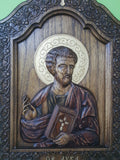 Ikona Sveti Luka izradjena od hrasta dimenzija 50cm x 39cm x 3cm. Ikona je izrađena od hrastovog drveta, bajcovana u orah i zaštićena prirodnim uljem i pčelinjim voskom. Mogućnost izrade po Vašoj želji i od raznih vrsta drveta. Imajte nešto posebno u svojoj kući.